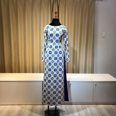 Áo Dài Lụa In Hoa Đồng Tiền Ngực