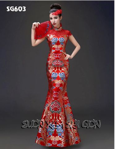 Sườn Xám Gấm Cưới Phả Đuôi Cá